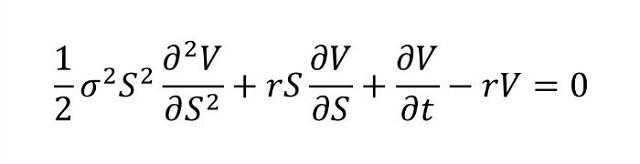 这又是一个微分方程,用于描述金融专家和交易者如何对衍生性金融产品(诸如股票、债券、货币、和商品)进行定价,这对金融从业人士提供了有力的指导与帮助。